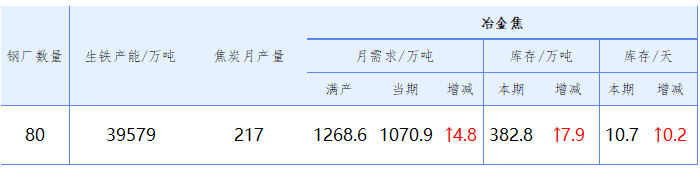二、部分鋼廠冶金焦庫(kù)存匯總(5月4日-5月11日)