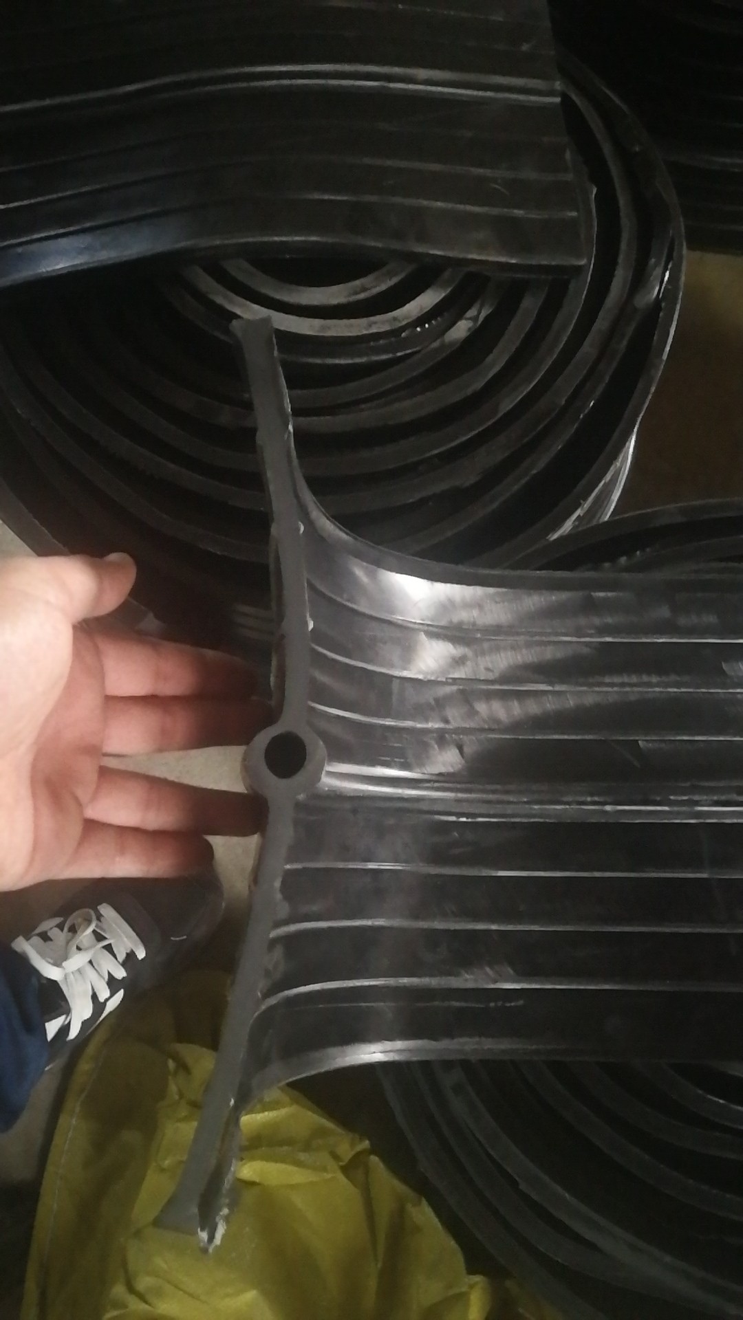 橡膠止水帶是利用橡膠的高彈性和壓縮變形性的特點,在各種載荷下產(chǎn)生彈性變形,從而起到有效緊固密封,防止建筑構造的漏水、滲水及減震緩沖作用。在一般較大工程的建筑設計中,由于不能連續(xù)澆注,或由于地基的變形,或由于溫度的變化引起的混凝土構件熱脹冷縮等原因,需留有施工縫、沉降縫、變形縫,在這些縫處必須安裝止水帶來防止水的滲漏問題。止水帶主要用于混凝土現(xiàn)澆時設在施工縫及變形縫內(nèi)與混凝土結構成為一體的基礎工程,如地下設施、隧道涵洞、輸水渡槽、攔水壩、貯液構筑物產(chǎn)品